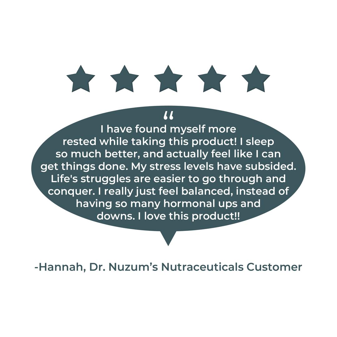“I have found myself more rested while taking this product! I sleep so much better, and actually feel like I can get things done. My stress levels have subsided. Life's struggles are easier to go through and conquer. I really just feel balanced, instead of having so many hormonal ups and downs. I love this product!!"