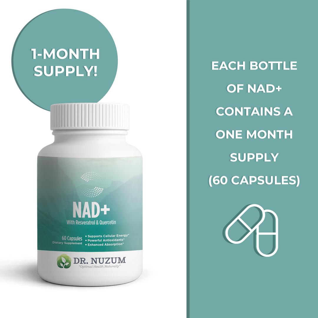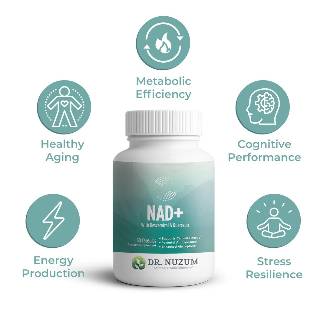 By age 60, your NAD+ levels can drop by up to 50%, leading to fatigue, slower metabolism, cognitive decline, and accelerated aging. The good news: you can help replenish your body’s natural NAD+ supply — and reignite your vitality — with Dr. Nuzum’s NAD+ Cellular Rejuvenation Formula.