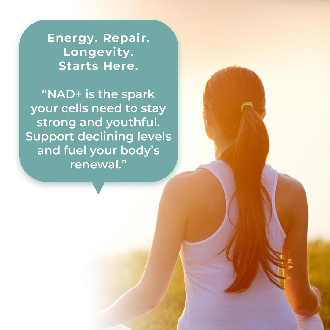 Backed by breakthrough research, NAD+ is a key coenzyme your body needs to produce energy, repair DNA, and defend against aging. This formula helps replenish declining NAD+ levels for renewed vitality and resilience.