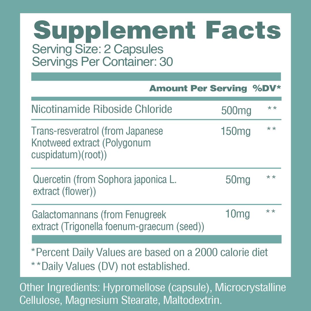 This advanced blend combines clinically backed nutrients that help your body naturally rebuild and maintain NAD+ levels, supporting your energy and longevity from within. Perfect for anyone looking to support healthy aging, sustained energy, and sharper focus,  especially adults over 40 who want to feel young, strong, and resilient.