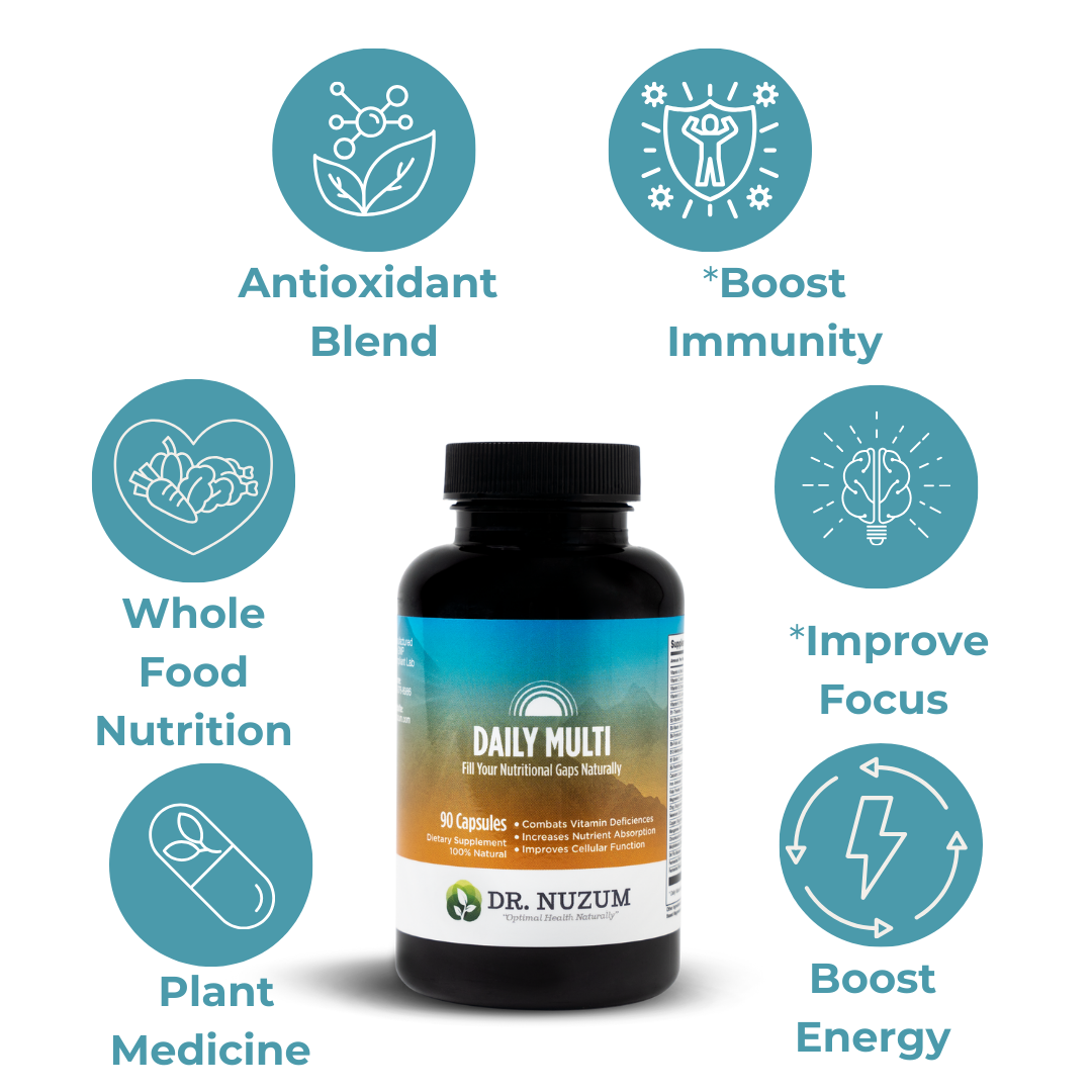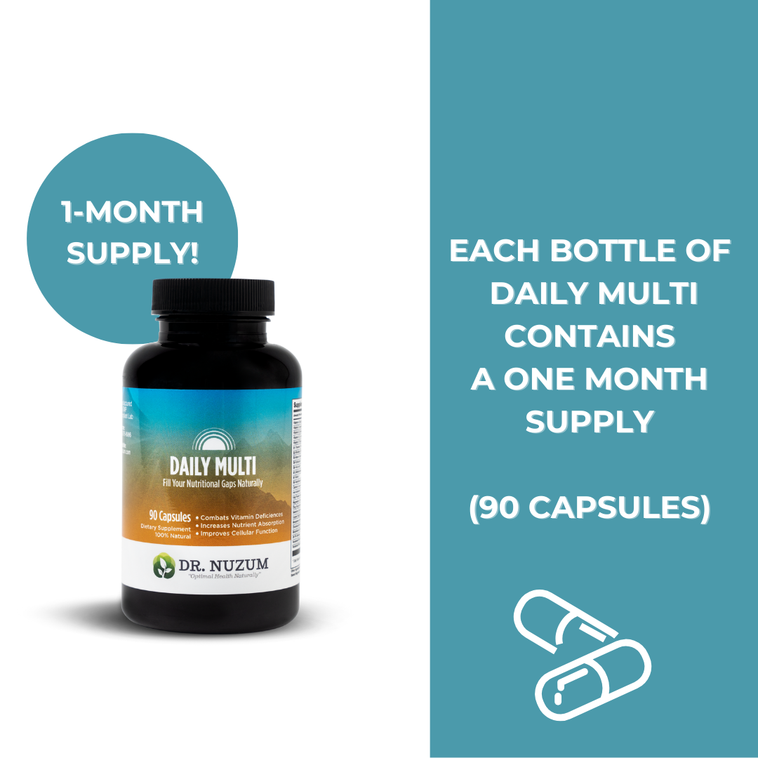 Our food no longer contains the nutrients we need, leaving gaps in our daily vitamin and nutrient intake. This Daily Multivitamin can help fill nutritional gaps and provide essential vitamins and minerals that your body needs for various functions, such as energy production, immune support, and cellular repair. Additionally, they can contribute to overall health by supporting heart health, bone health, and the prevention of chronic diseases. As dietary needs vary by individual, a daily multivitamin can serve as a simple and effective way to support your personal health goals.